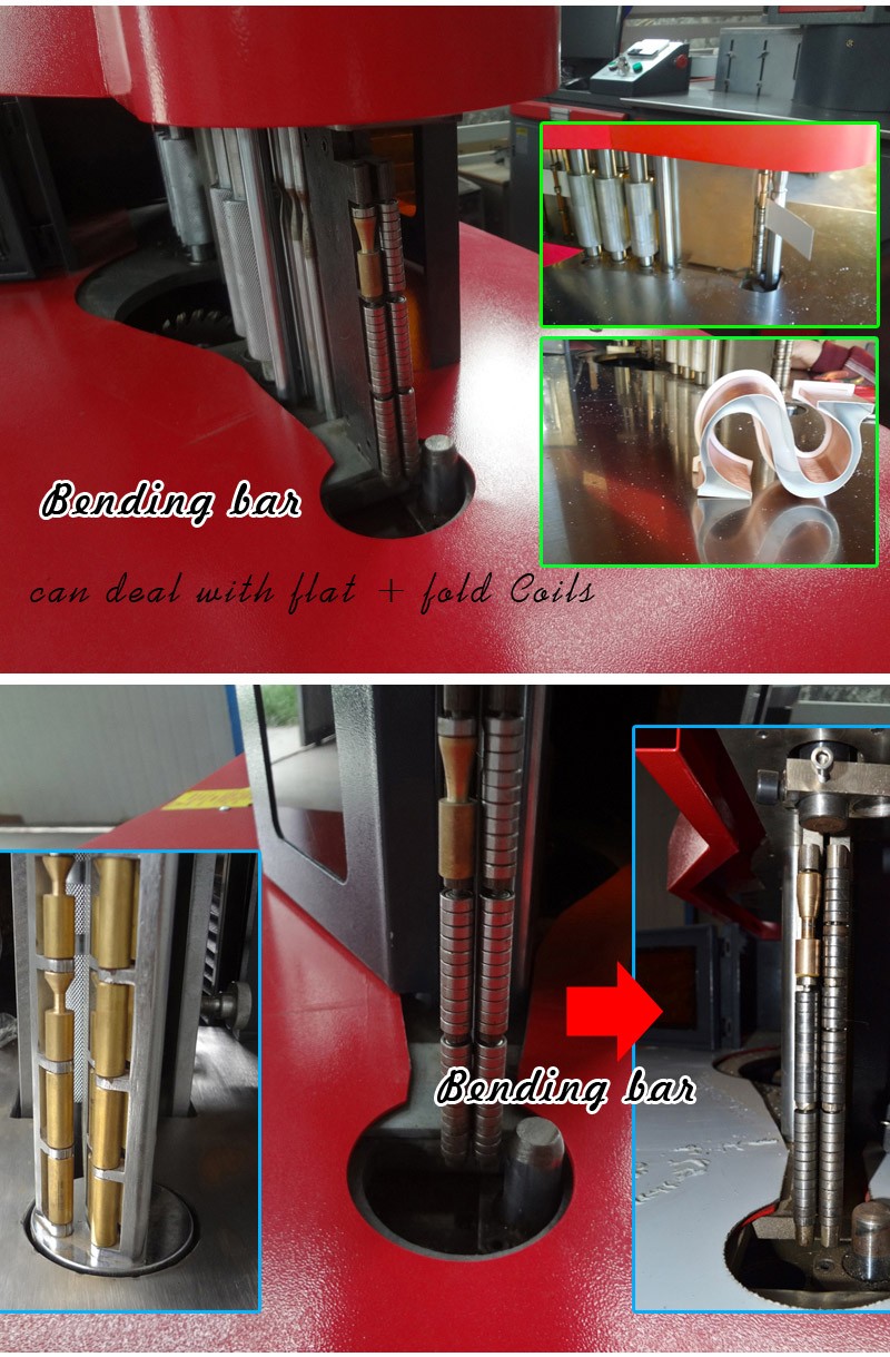 Feeding Parts----With elastic spring feeding device, it can feed easily with different width material, easy take out.